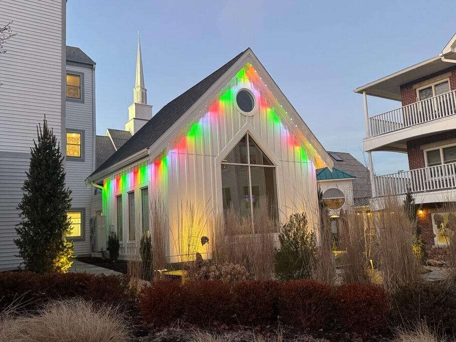 We recently helped Elim Park in Cheshire get into the holiday spirit year round by installing permanent lights! They'll be able to make their Main Entrance and Sanctuary Bright all year round with a variety of colorful lights they can customize with the touch of a button. To learn more about our permanent lights services, call Bright Brothers today!