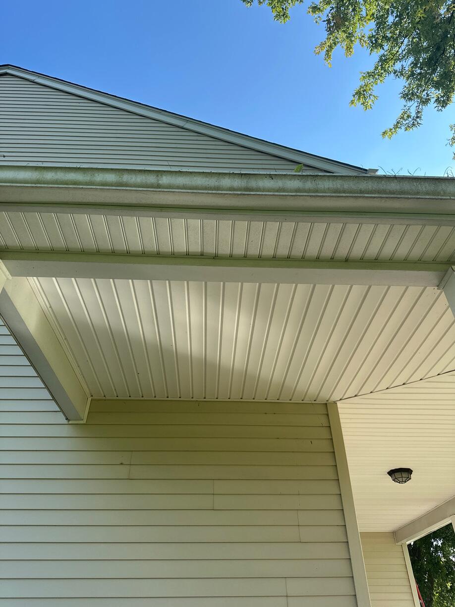 Before Bright Brothers professional soft wash, the gutters on this home were covered in grime, leaving them discolored with what's known as "zebra striping." Thanks to our Bright Stuff Gorgeous Gutters solutions, they're now restored to a bright, clean finish!
