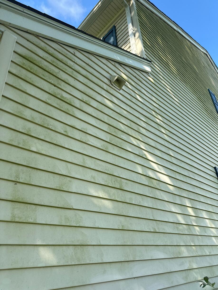 Before a professional soft wash by the Bright Brothers team, this vinyl siding was covered in mildew and algae. Using our eco-friendly, gentle yet highly effective solution, we restored it to a clean, fresh look.