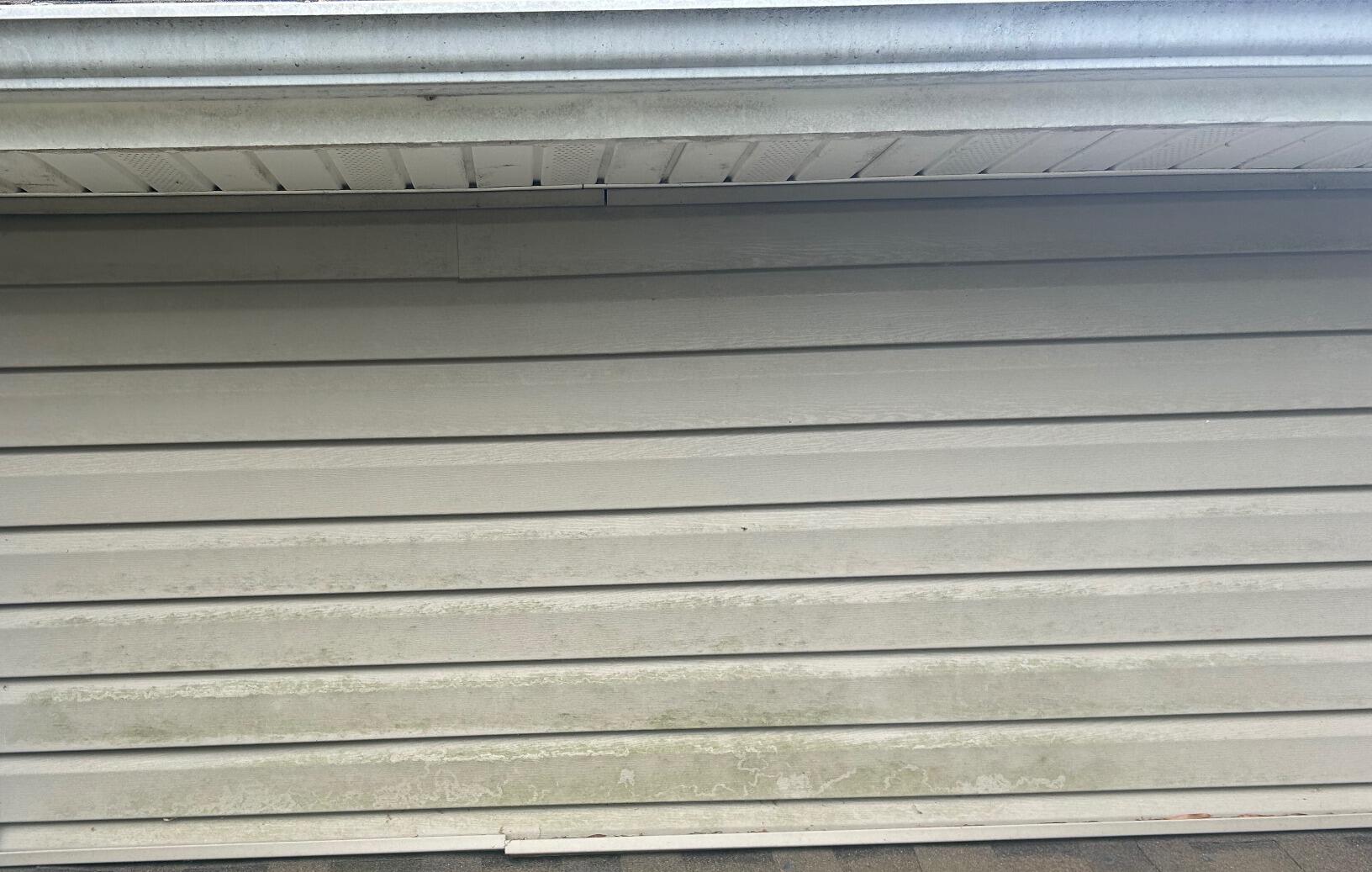 Unsightly algae stains on this vinyl siding have been removed by Bright Brothers Soft Washing.
