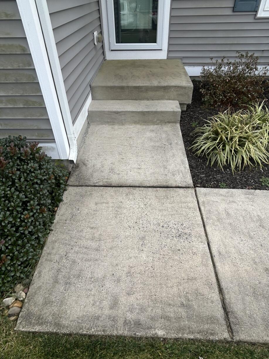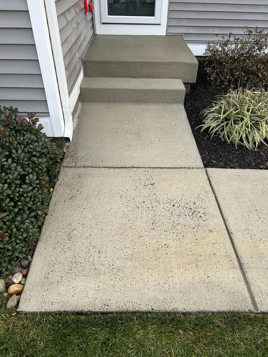 The walkway leading up to this home was covered in unsightly stains. Using our eco-friendly cleaning solution, we removed the buildup and made it CLEEEN again!