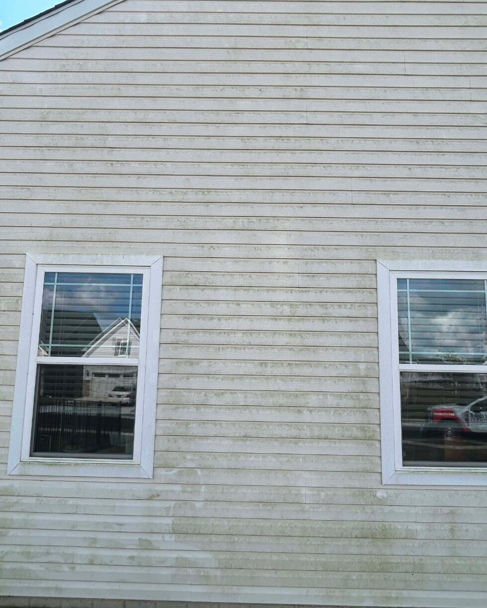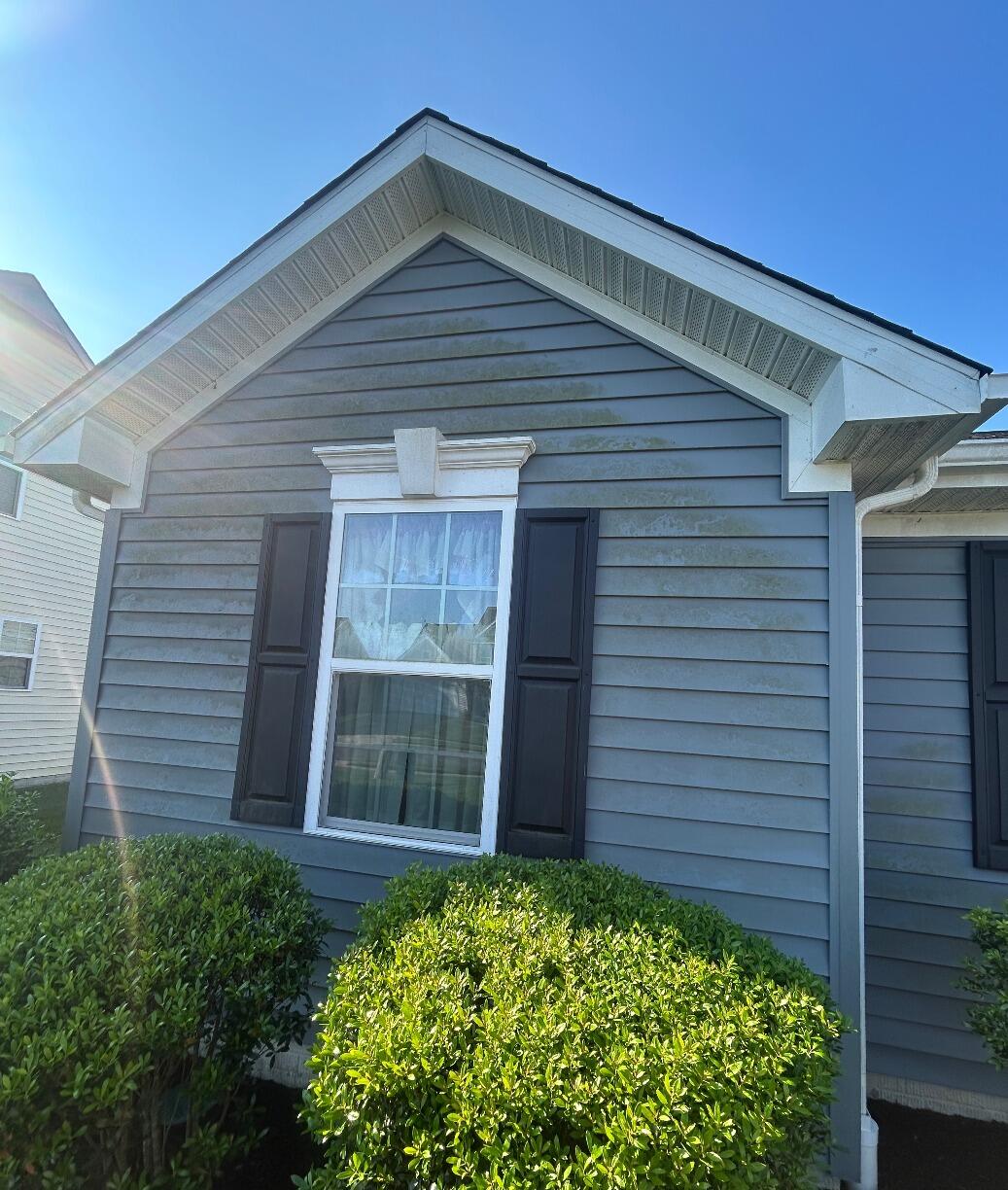 Before soft washing, the siding on this home was covered in mold and mildew, making it look dirty and dull. After the soft wash, it's now spotless and CLEEEN!