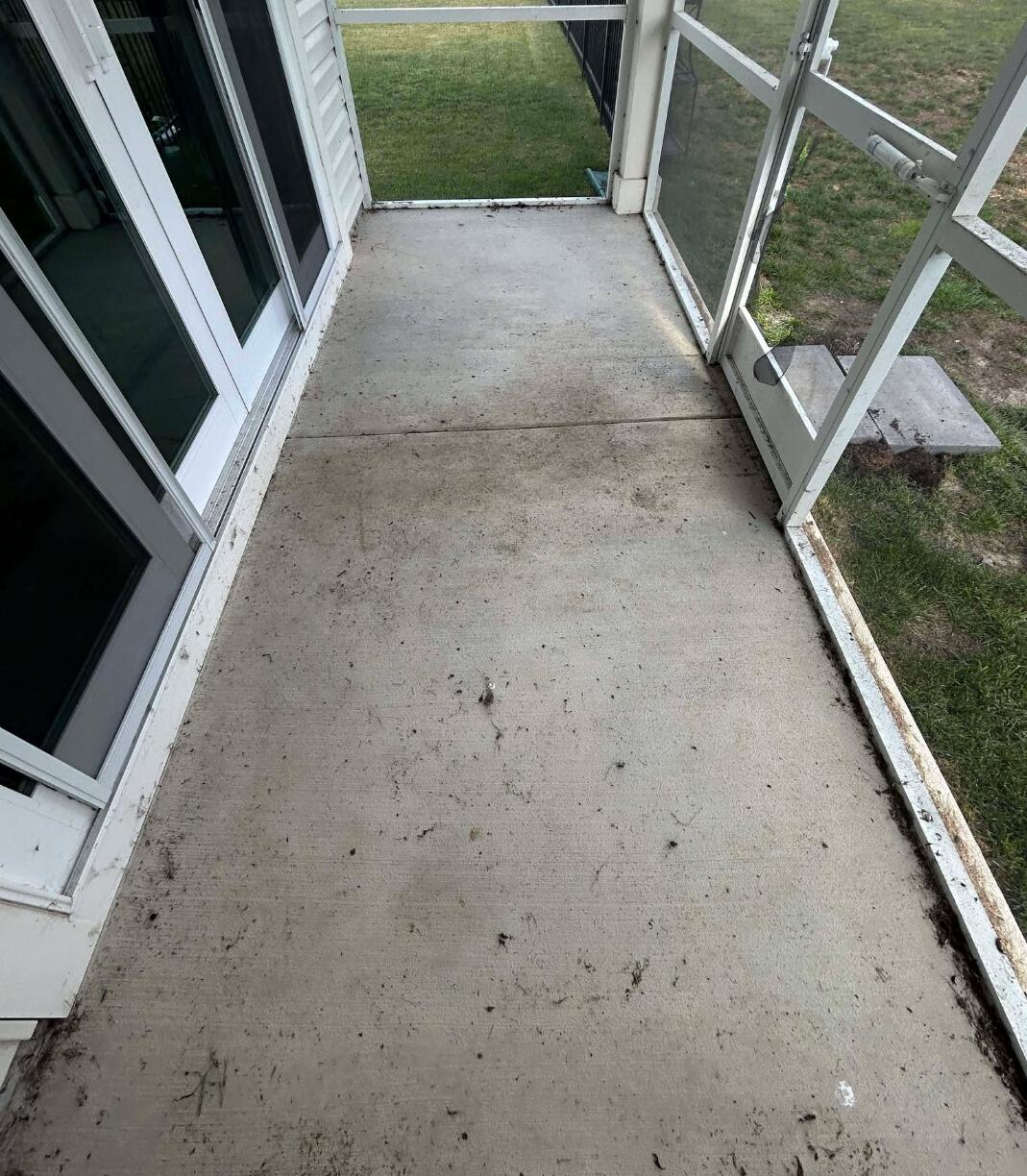Before washing, this concrete patio was covered in unsightly stains that left it looking discolored. With our eco-friendly cleaning solution and Bright Stuff Soft Soap, we made it sparkling CLEEEN and stain-free!