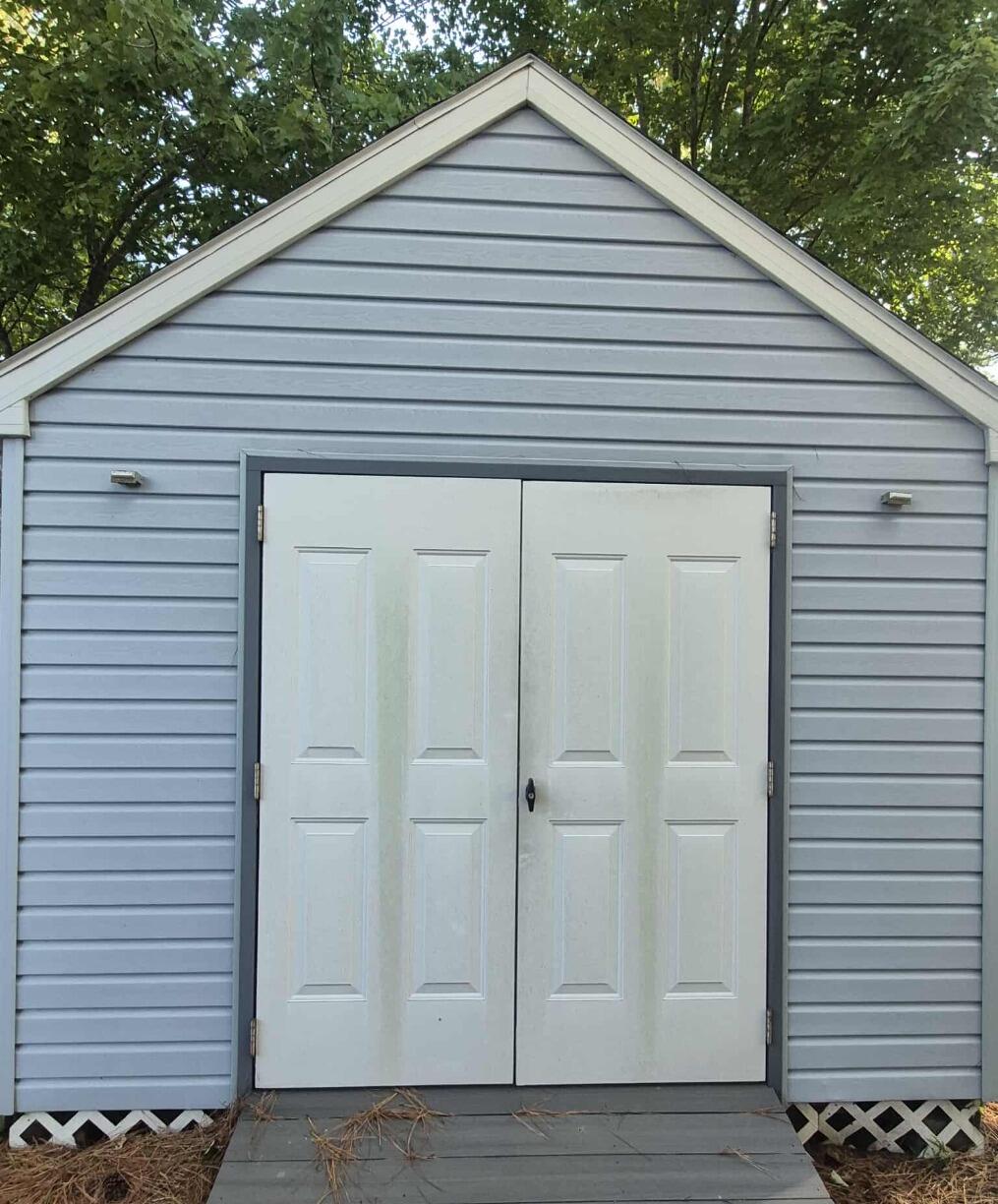 Before soft washing, this vinyl shed was covered in green grime. Using our Bright Brothers Soft Wash Process, we were able to make it CLEEEN again!