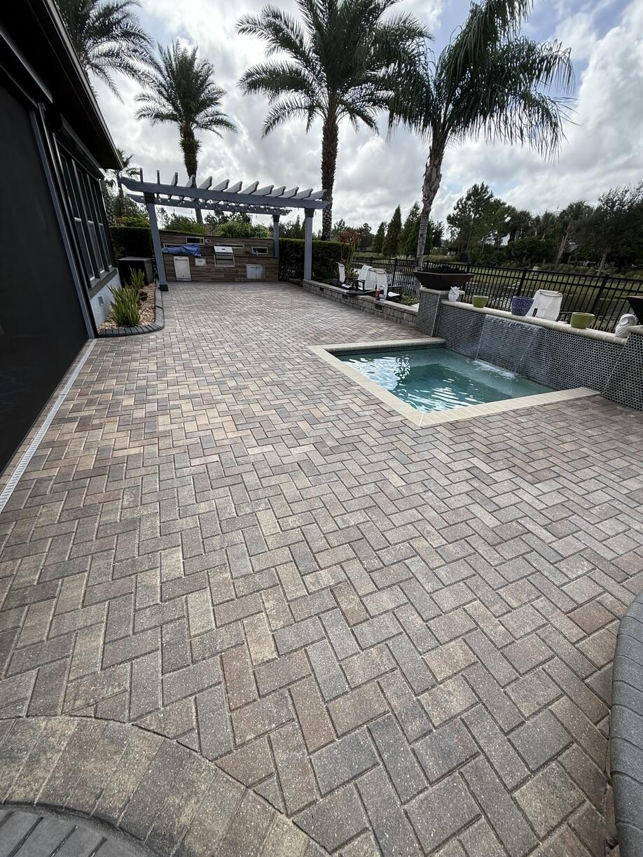 This gorgeous house on the river needed a house wash and their new paver driveway sanded and sealed, and boy, did we deliver! We love working on projects big and small, but this driveway was something special. I love how the sealer brings out the natural color in the stone!
