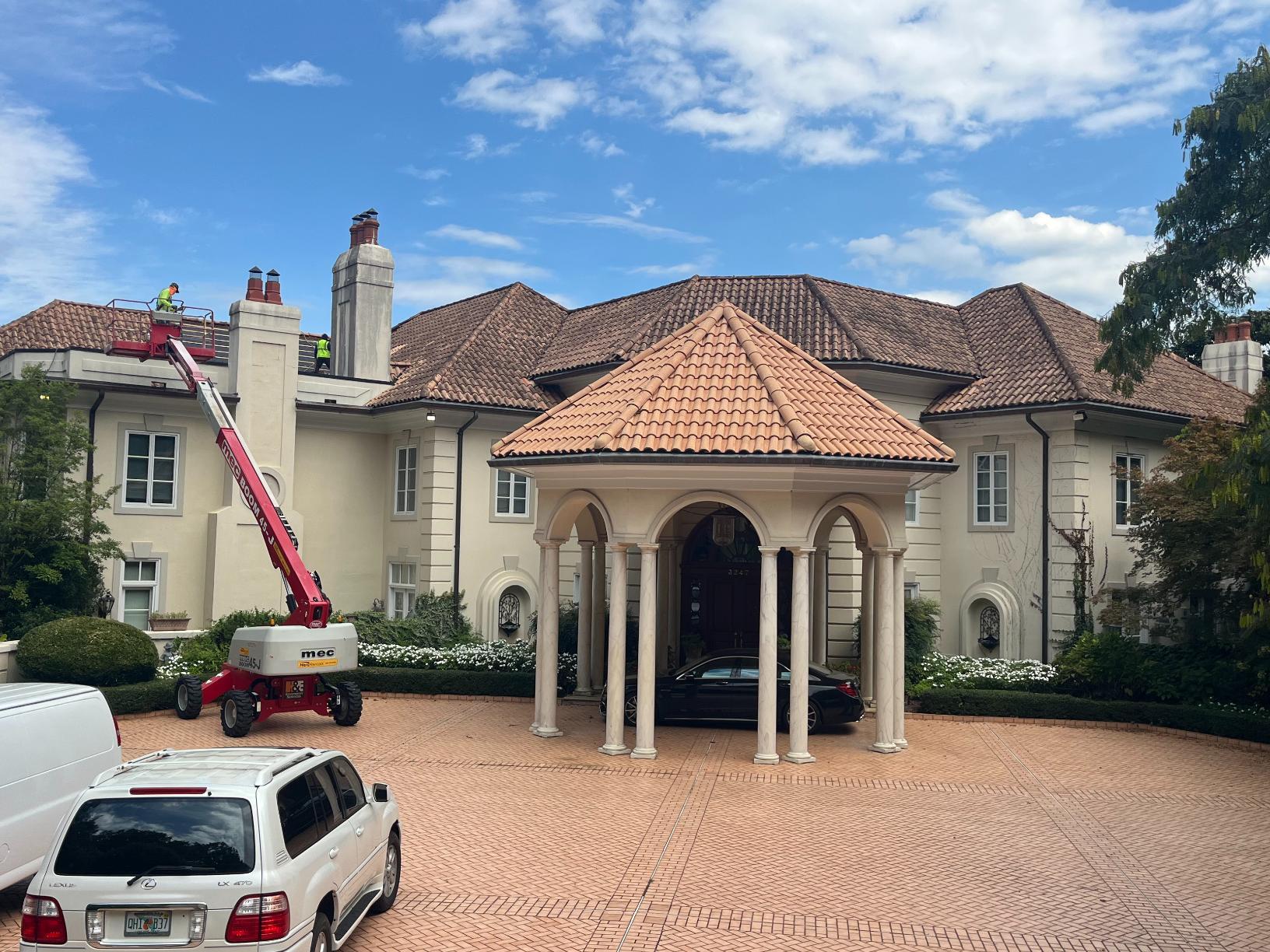 Our team soft washed this roof in Quail Hollow. They could not believe that the roof could look like new again. We used our Bright Stuff products with our soft washing process to remove the mold and algae growth.