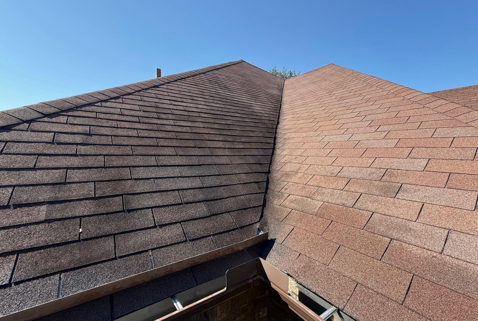 Over time, mother nature starts to take a toll on your shingle roofs. You will start to notice black streaks that will get darker and darker over time. This is stage two infestation that will eventually become stage three infestation (moss on roof) if ignored. By applying our proprietary solutions in stages, we are able to kill the algae that has attached itself to your shingles. Our solution not only cleans but it kills the algae and leaves your roof looking bright and new again.