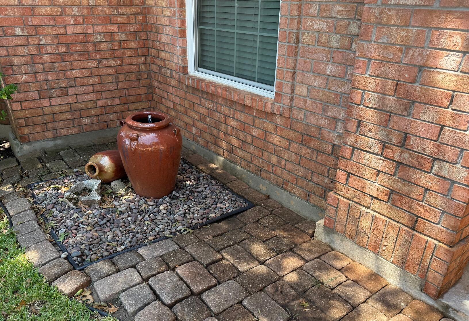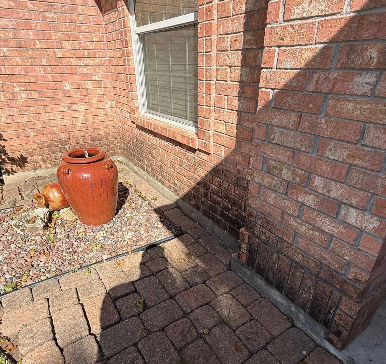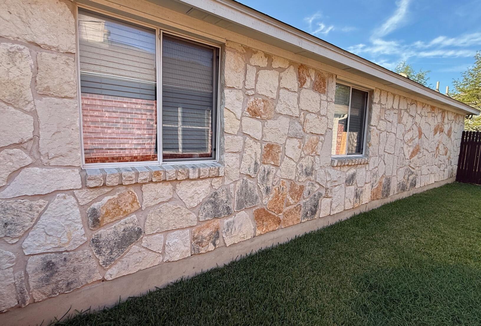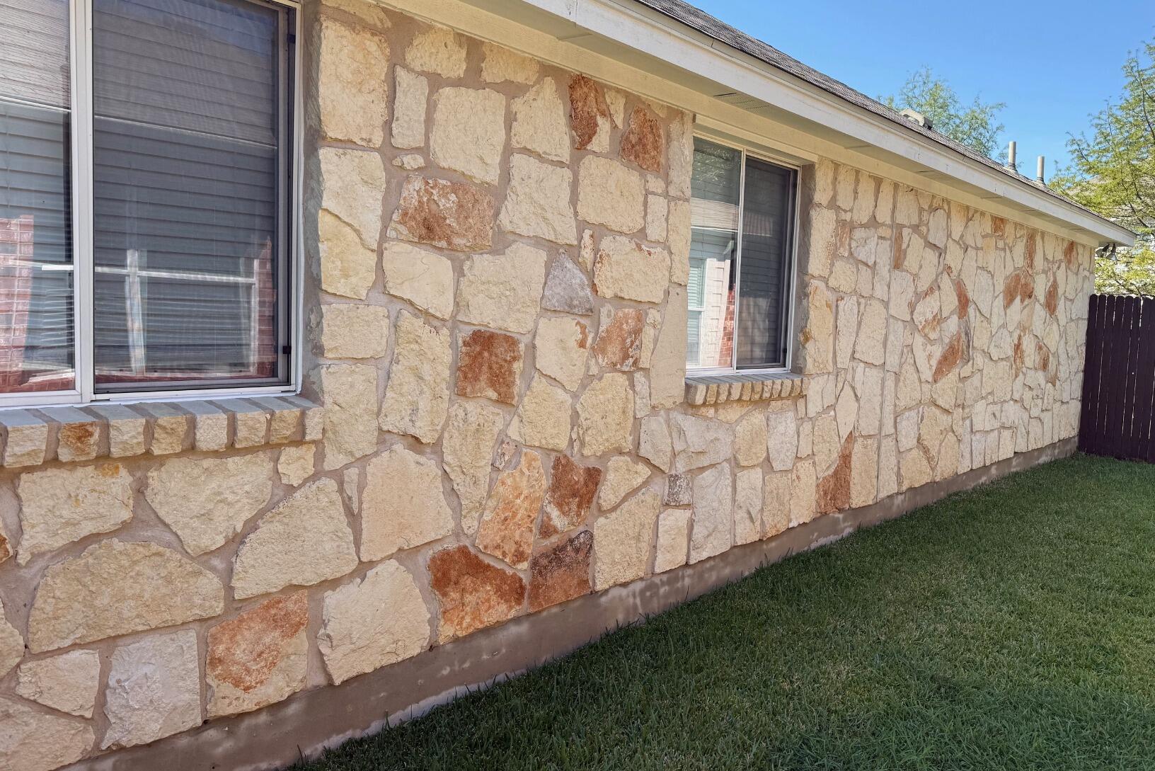Beautiful limestone home that was being overtaken with algae. Algae typically begin in one area, then spreads depending on the amount of sun and moisture that is present. This is very common on Texas homes, patios, walkways and other areas that have limestone present. By using our soft wash process and proprietary solutions we are able to attack the algae at the attachments. Our technical application will kill the algae and remove it safely, leaving your original beautiful limestone color.